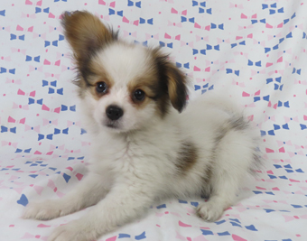 〜この子犬の動画を見ることができます〜 父 カヌレ イギリスチャンピオンアークの血統 母 ラン インターナショナルチャンピオンコンノアの血統 イギリス×イギリスのアウトラインブリード 成長時の予想体重は3〜4.5キロ 当マダムパピヨン犬舎はパピヨン一筋50年の日本で一番歴史のあるパピヨン専門犬舎です。犬舎号登録は1970.10/19なので半世紀を超えます。 子犬と親犬はブリーダー歴30数年、40数年の経験者と動物看護士が中心に365日、注意深く、丁寧に観察してお世話をしております。 JKCの全犬種審査員資格者と単犬種パピヨン審査員資格者が在舎しておりますので、パピヨンのスタンダードを熟知しております。 血統書発行団体JKCより下記表彰を受けております。 JKC特別繁殖奨励賞第1位受賞 犬舎 JKCパピヨン犬種表彰受賞 犬舎 日本中の国産のパピヨンで当犬舎の血統が入っていない犬は存在しません。是非他のブリーダーやペットショップとの違いをご覧になってください。 ご見学は大歓迎ですのでご連絡の上、おいでください。365日年中無休です。 |