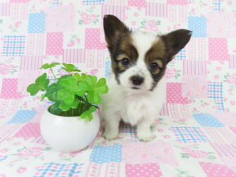 〜この子犬の動画を見ることができます〜 父 カヌレ イギリスチャンピオンアークの血統 母 ヤスナ インターナショナルチャンピオンコンノアの血統 イギリス系のアウトラインブリード 成長時の予想体重は3〜4.5キロ 当マダムパピヨン犬舎はパピヨン一筋50年の日本で一番歴史のあるパピヨン専門犬舎です。犬舎号登録は1970.10/19なので半世紀を超えます。 子犬と親犬はブリーダー歴30数年、40数年の経験者と動物看護士が中心に365日、注意深く、丁寧に観察してお世話をしております。 JKCの全犬種審査員資格者と単犬種パピヨン審査員資格者が在舎しておりますので、パピヨンのスタンダードを熟知しております。 血統書発行団体JKCより下記表彰を受けております。 JKC特別繁殖奨励賞第1位受賞 犬舎 JKCパピヨン犬種表彰受賞 犬舎 日本中の国産のパピヨンで当犬舎の血統が入っていない犬は存在しません。是非他のブリーダーやペットショップとの違いをご覧になってください。 ご見学は大歓迎ですのでご連絡の上、おいでください。365日年中無休です。 |